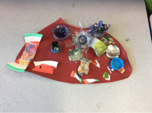 I like the plastic flower and the lolly packet on my design, I don't like the watermelon plate! Room Nine don't like the egg box!!